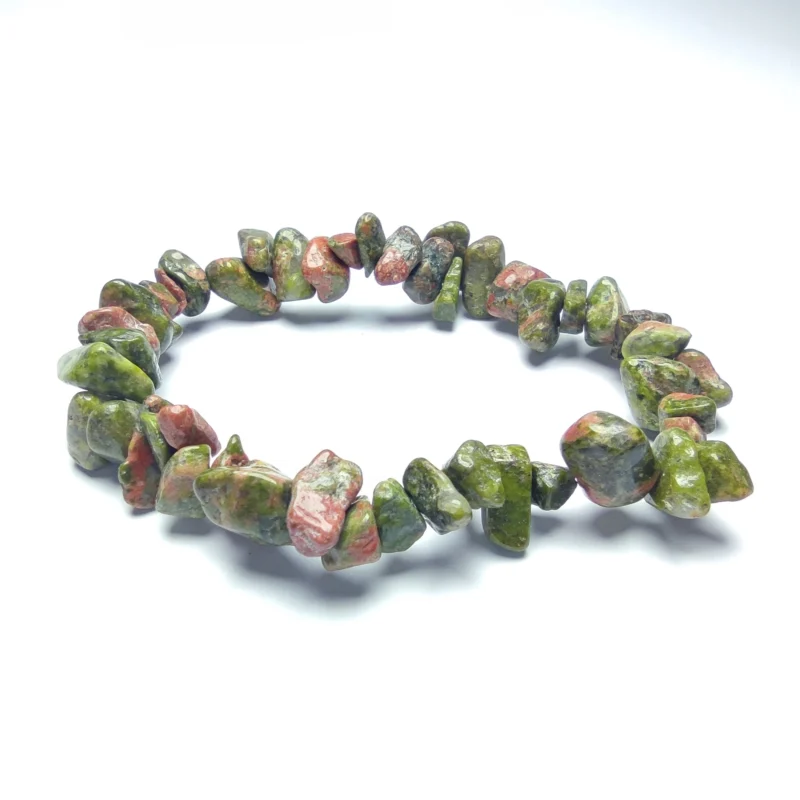 An elegant bracelet made from natural Unakite stone, 17 cm in length. Designed for comfort and style, with benefits that promote emotional and spiritual harmony.